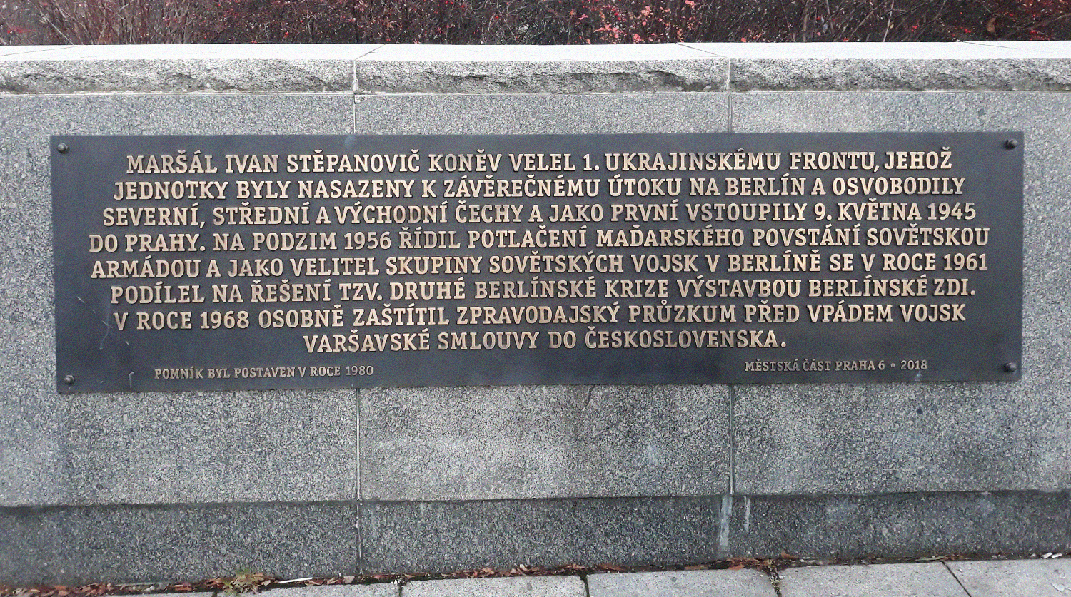 В 50-летнюю годовщину этих событий с подачи администрации Праги 6 на монумент были добавлены «разъясняющие» таблички на чешском и русском языках, имевшие задачей «объективно» рассказать о деятельности Конева.