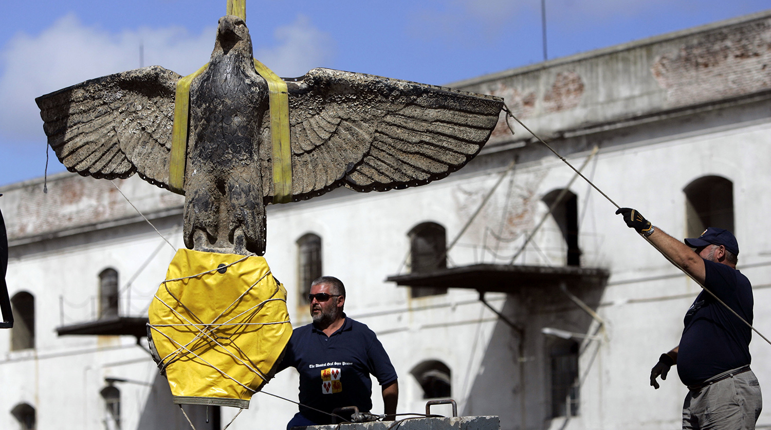 360-килограммовый нацистский орел со свастикой, в 2006 году поднятый исследователями с затопленного корабля времен Третьего рейха «Адмирал граф Шпее», будет продан на аукционе, сообщает Daily Mail. Соответствующее решение приняла судебная инстанция в Уругвае: именно в территориальных водах этой страны, в заливе Ла-Плата и был найден ценный исторический артефакт.