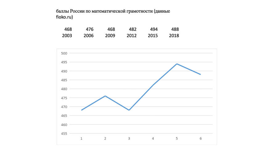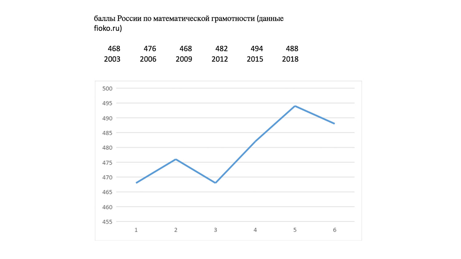 — Действительно, это сейчас везде обсуждают, причем, будто это катастрофа, все пропало. Потому что, например, балл по математической грамотности упал с 494 до 488. Кстати, в некоторых странах в исследовании отдельно участвуют и регионы, например, в Китае отдельно участвует Шанхай. У нас отдельно участвовала Москва и улучшила результаты по всем направлениям, входя в число мировых лидеров.