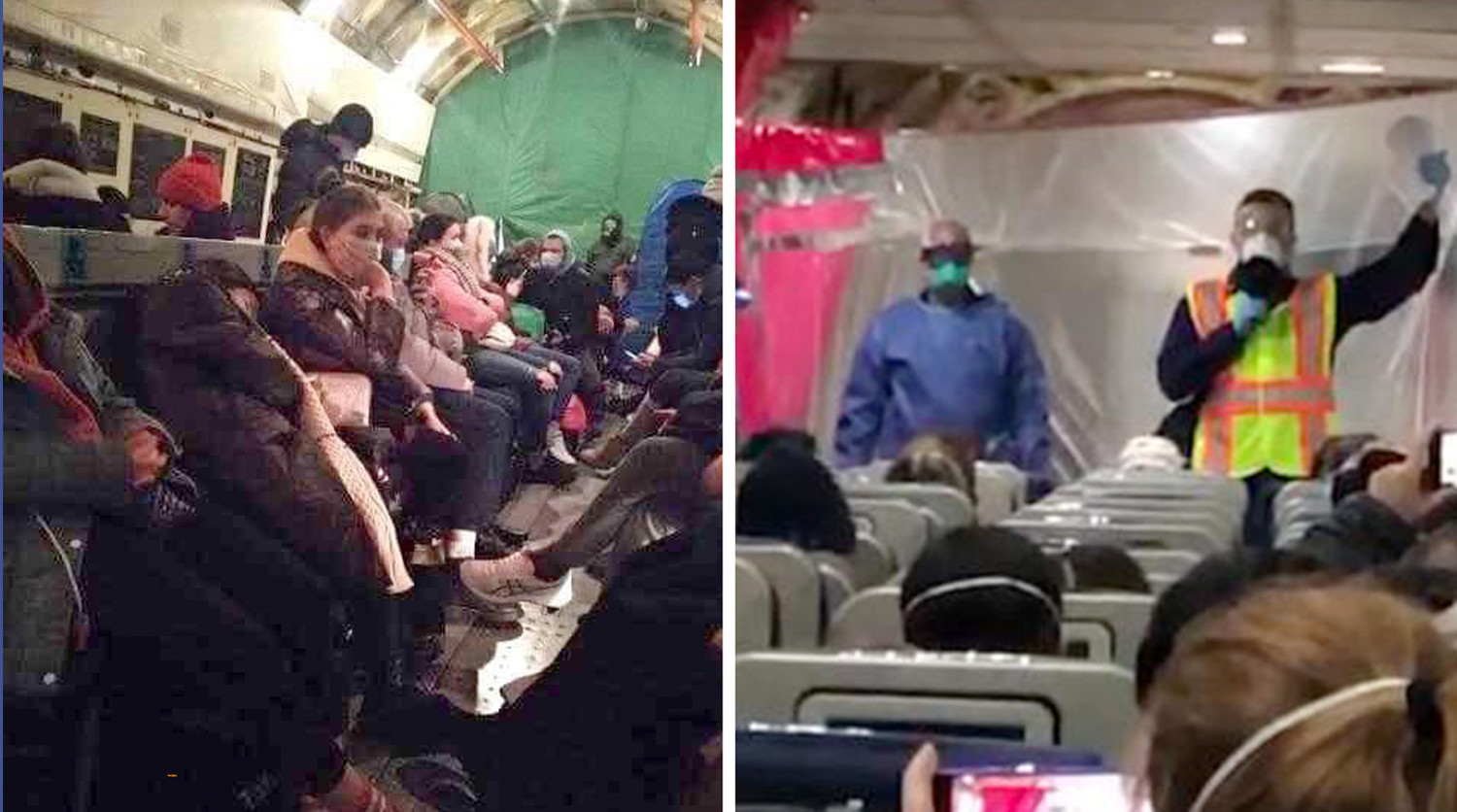 На большинстве кадрах, снятых самими гражданами, видно, что эвакуация проходила пассажирскими самолетами, люди сидели в обычных креслах, как правило, в масках. При этом части салона самолета были изолированы друг от друга пластиковыми занавесками.