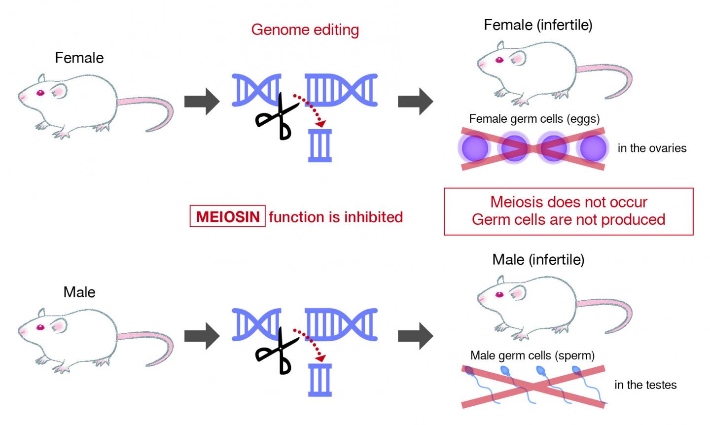 Группа исследователей, экспериментируя на мышах, смогла выделить новые гены мейозин и STRA8, которые контролируют процесс перехода от митоза к мейозу. Мейозин активируется в строго определенное время, непосредственно перед началом мейоза в гонадах. Если искусственно деактивировать его, и самцы, и самки станут бесплодны.