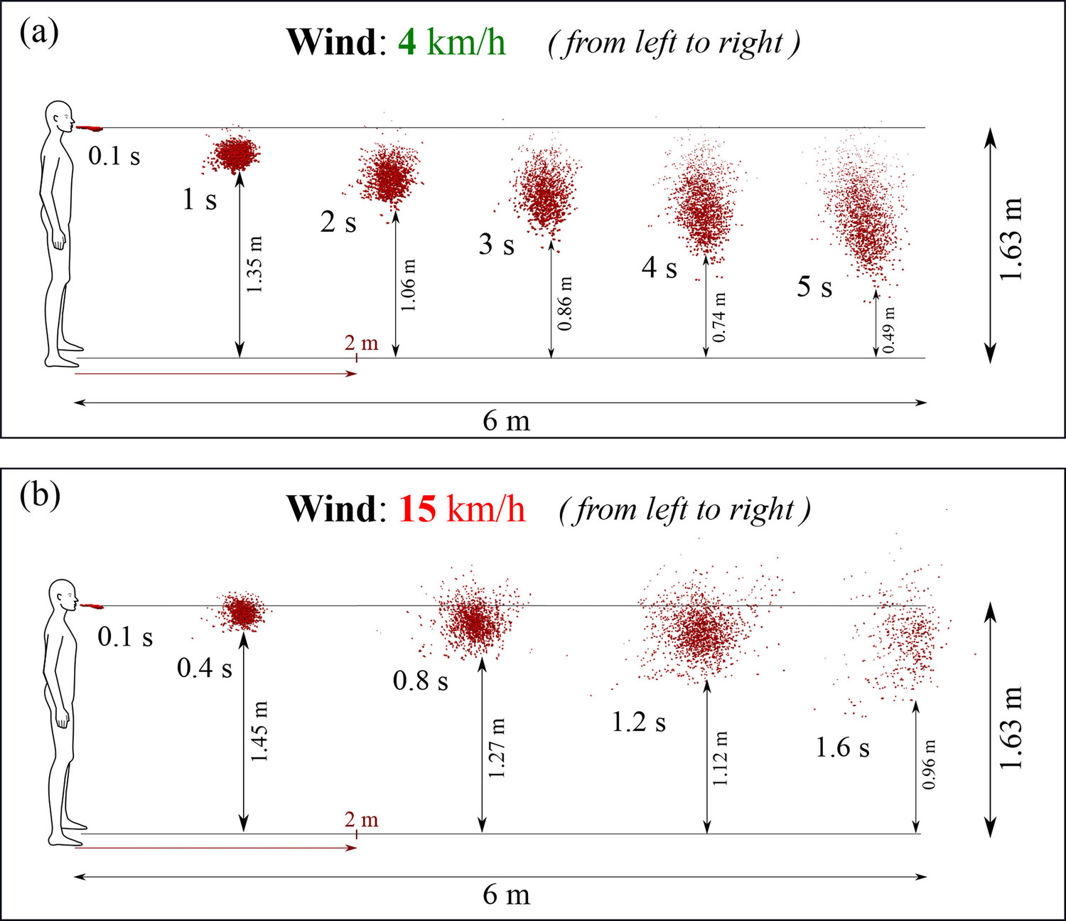 Если же скорость ветра составит 15 км/ч, слюна преодолеет шесть метров за 1,6 секунды. Постепенно облако микрокапель будет снижаться, поэтому в зоне поражения окажутся дети и невысокие люди.