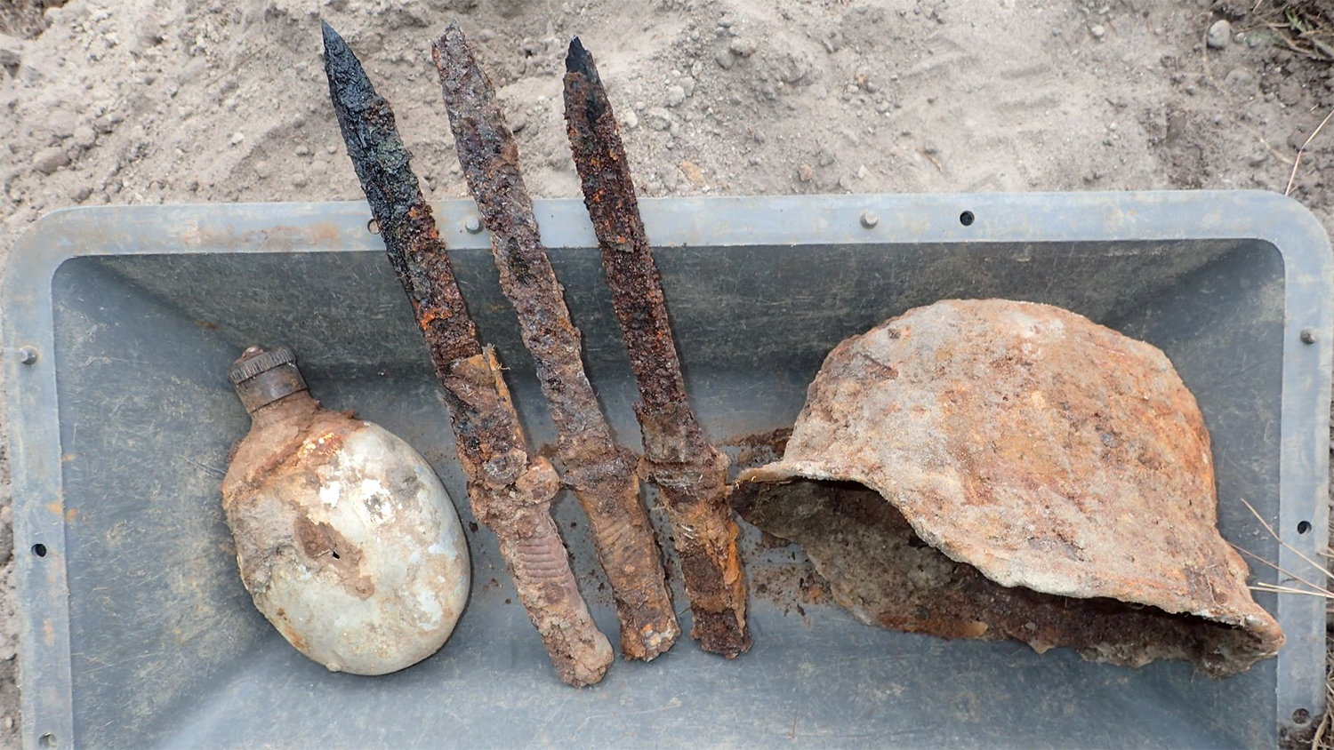 Среди найденных артефактов – немецкое оружие, инструменты, смертные медальоны, а также медали, которые помогли идентифицировать солдат, как десантный полк Люфтваффе.