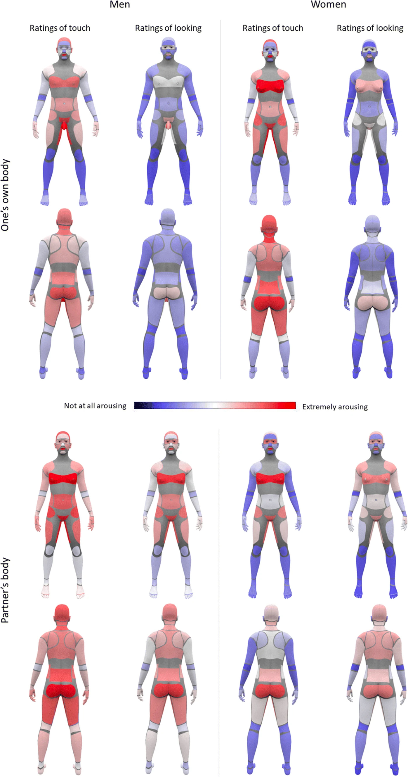Кроме того, ученые обнаружили существенные различия между мужчинами и женщинами. Мужчины находили выраженно сексуальные области (половые органы, соски и т. п.) на теле партнера более возбуждающими, чем на своем собственном. Иными словами, для мужчин более возбуждающим оказалось прикасаться к телу партнера и смотреть на него, чем получать прикосновения и ловить взгляды.