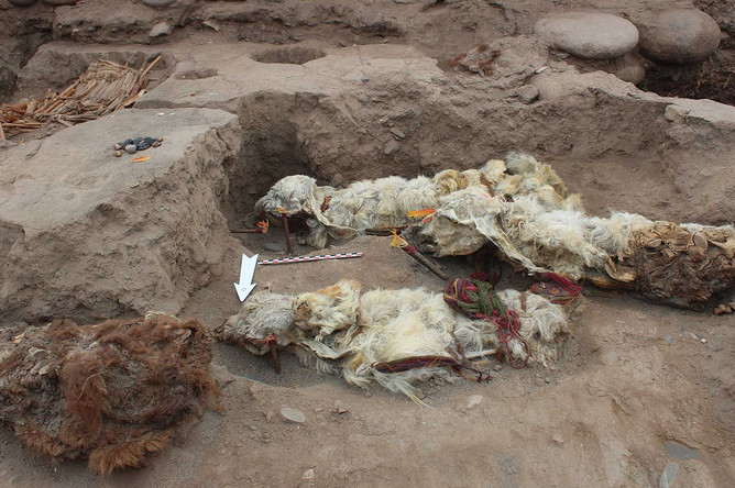 В Империи Инков поклонялись многим божествам — считалось, что те имеют власть над природой и разными аспектами жизни, поэтому важно, чтобы боги были счастливы. Чтобы задобрить их, использовались жертвоприношения. На место одного из них археологи наткнулись во время раскопок на территории бывшего поселения инков Тамбо-Вьехо на южном побережье Перу. Всего они нашли останки пяти лам, но ранее поселение было разграблено, поэтому изначально останков могло быть больше.