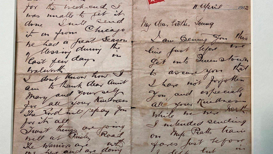В 2018 году с аукциона ушло письмо выжившей пассажирки второго класса Кейт Басс, написанное 10 апреля 1912-го. Она подробно описала свои впечатления от лайнера и жаловалась на смертельную усталость, из-за которой даже не хотела идти на ужин.
