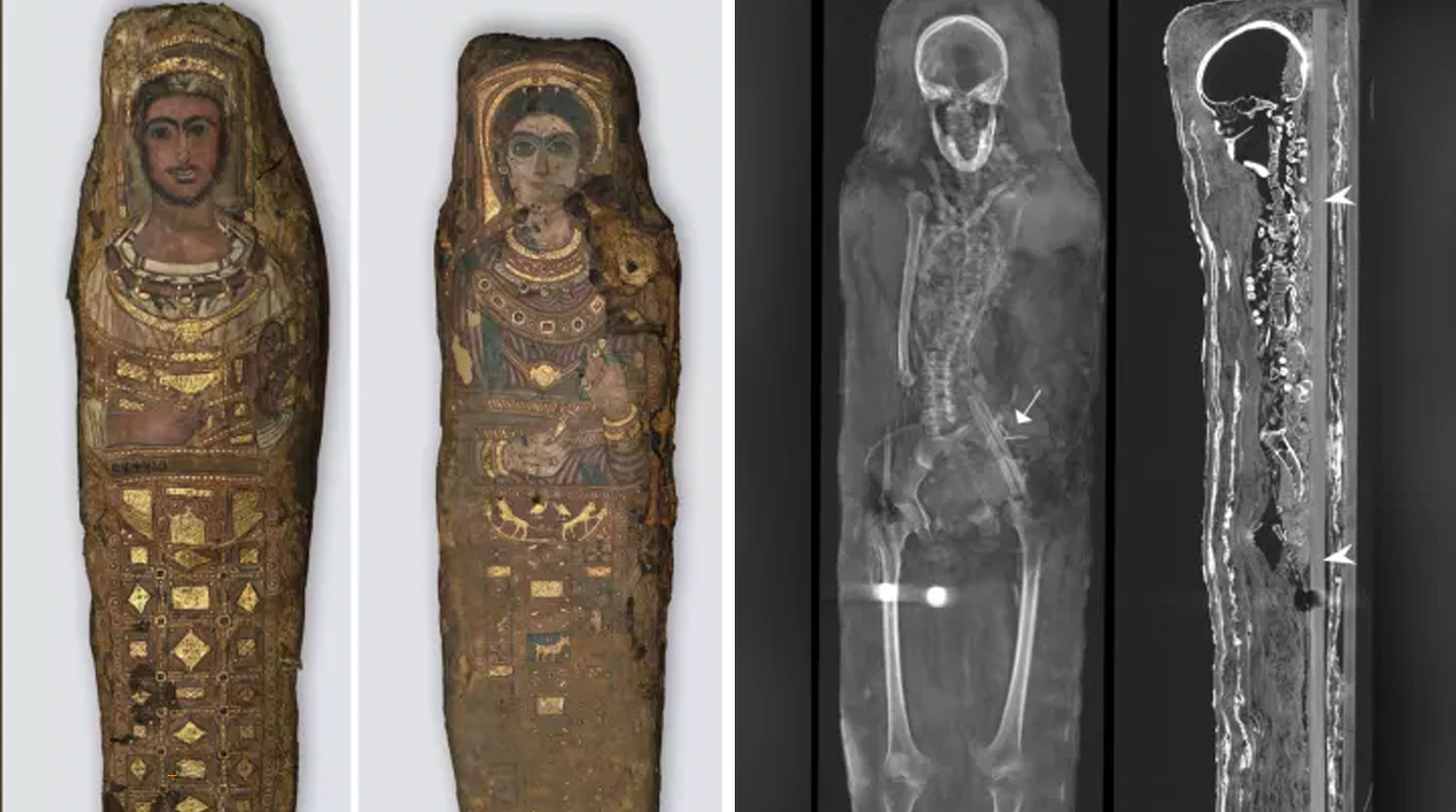Три найденные в 1615 году египетские мумии исследовали ученые при помощи компьютерной томографии. Результаты их работы опубликованы в журнале PLOS One. Это единственные сохранившиеся мумии с лепными украшениями из некрополя в Саккаре. В отличие от других, погребенных в саркофагах, этих покойников клали на деревянные доски, затем оборачивали тканью и саваном, после чего украшали при помощи гипса и золота. Кроме того, наносили портретное изображение во всю длину тела.