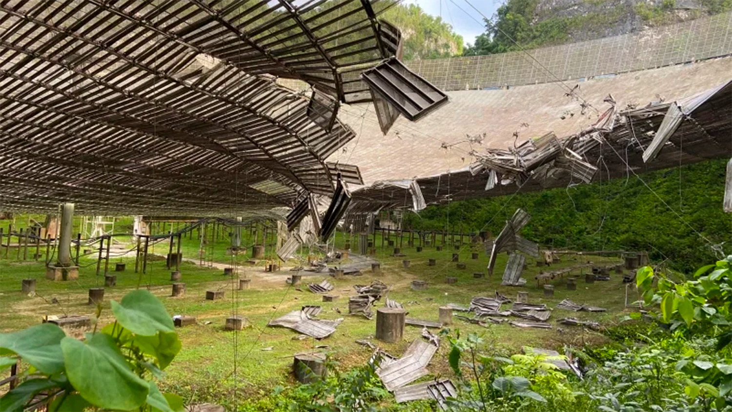 В результате обрыва троса, поддерживающего облучатель антенны, в главном зеркале телескопа диаметром 300 метров образовался провал размером в 30 метров – кадры с этим проломом облетели весь мир.