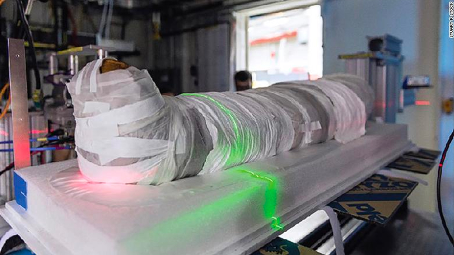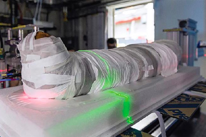 Ученые из трех университетов США разработали новую технологию изучения останков без вскрытия саркофага и опробовали ее на 1900-летней мумии. В своей работе исследователи использовали комбинацию из компьютерной томографии и дифракции рентгеновских лучей. Эксперимент был проведен над мумией из периода римского господства в Египте, обнаруженной в начале XX века в некрополе Хавара в 6 км от города Файюм недалеко от Нила.
