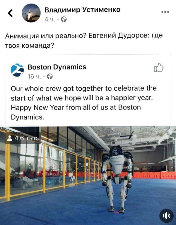 --У нас тоже есть робот, Федор. И недавно, когда весь мир балдел от танцующих роботов фирмы Boston Dynamics, глава пресс-службы Роскосмоса предположил, что это всего лишь анимация... Вы считаете, что роль роботов в космосе будет возрастать?