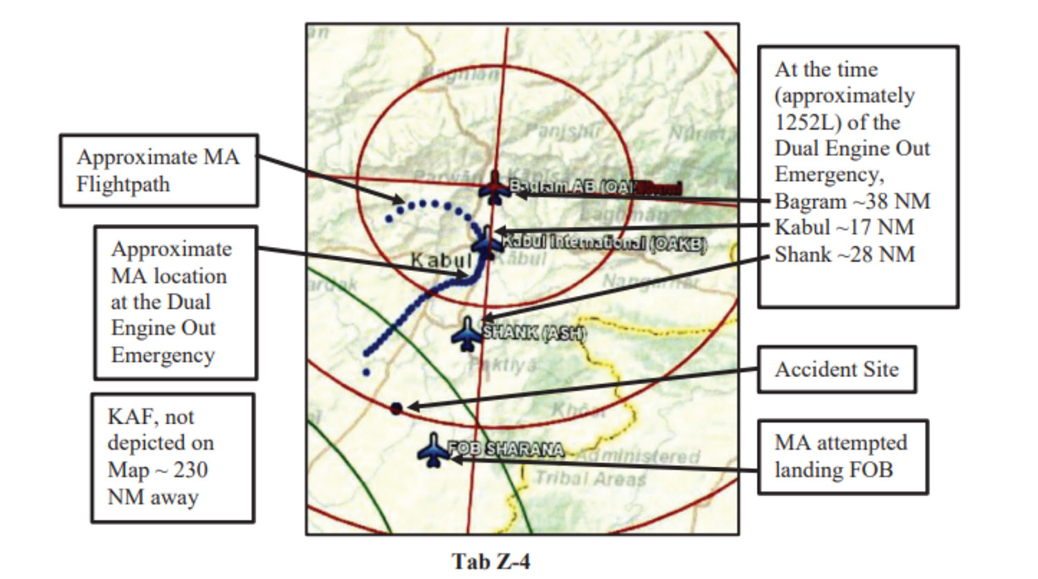 «Мэй-дэй», «мэй-дэй» (сигнал бедствия)… похоже у нас отказ обоих двигателей, сейчас мы движемся в направлении Кандагара», — сообщил командир. Экипаж пытался запустить оба двигателя, однако им не хватило тяги для продолжения полета в Кандагар, а до ближайших аэродромов было уже далеко.