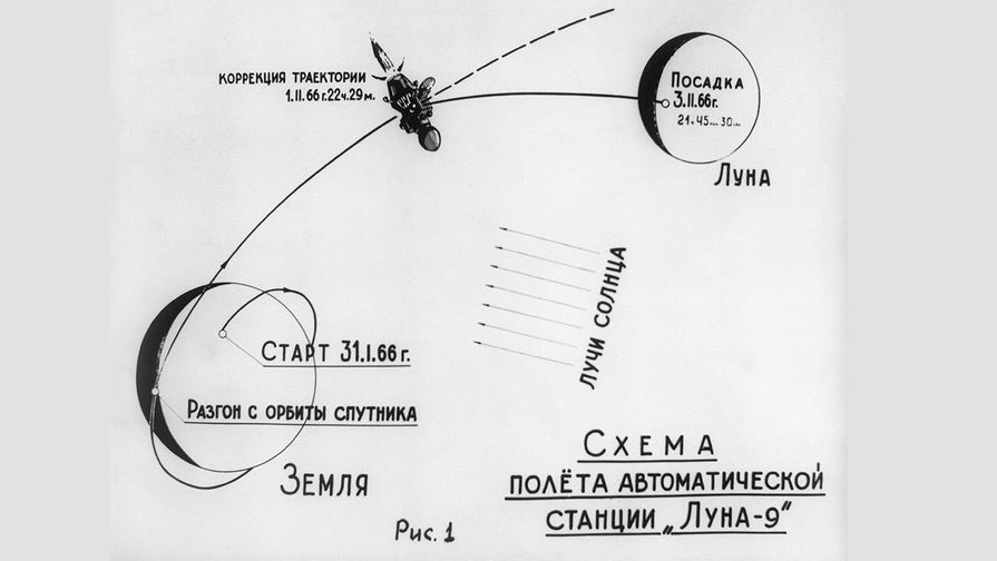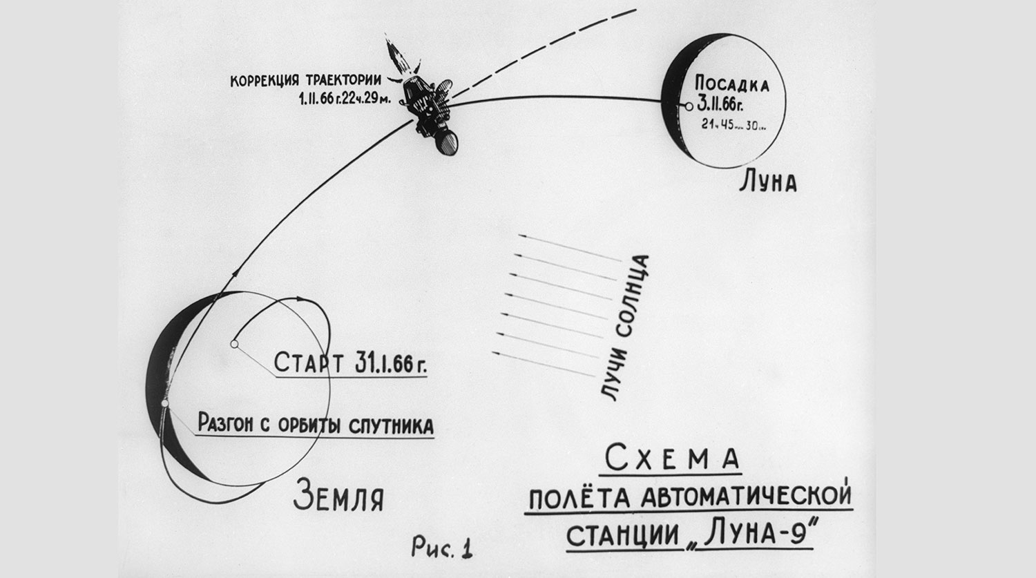 Советская автоматическая межпланетная станция «Луна-9». Схема полета станци