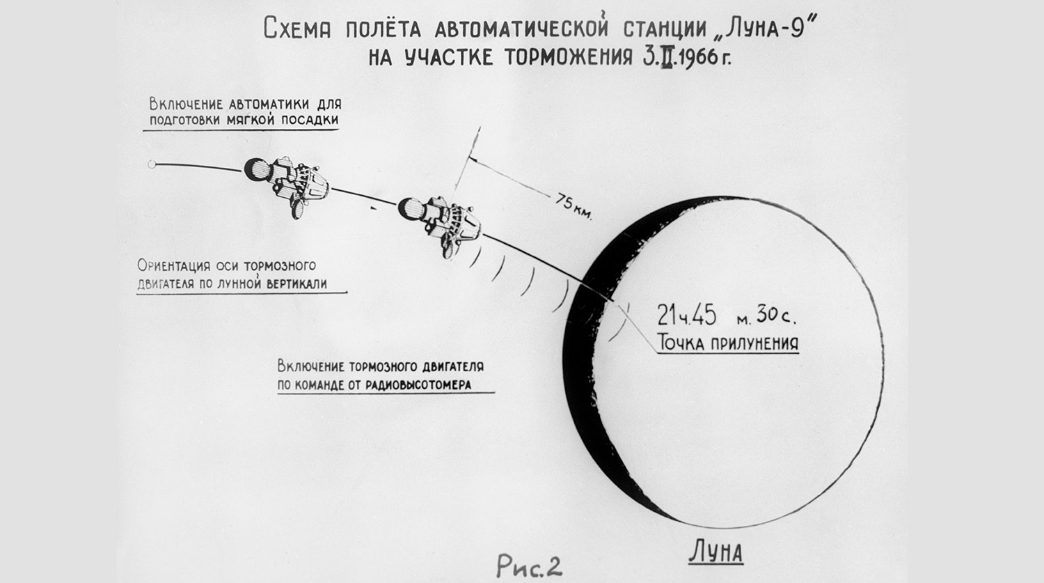 3 февраля 1966 года межпланетная автоматическая станция «Луна-9» произвела мягкую посадку на Луну. На следующий день по команде с Земли она начала обзор лунного ландшафта и передачу его изображения.