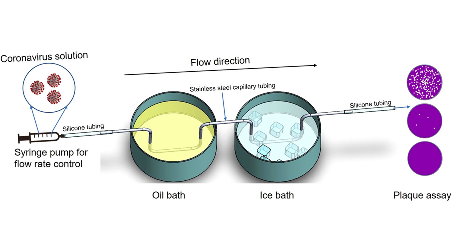 Исследователи разработали устройство, представляющее собой секцию трубки из нержавеющей стали, через которую пропускается раствор с SARS-CoV-2.