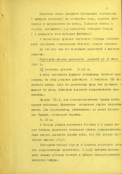 Интересные данные о действиях советских войск приводит в докладе разведотдел штаба 9 армии Германии, посланный в 17.40 23 июня.