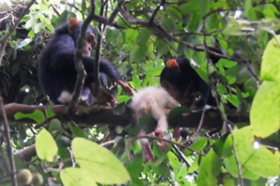И снова схватка закончилась гибелью детеныша. Ученые видели, как шимпанзе преследуют самку с малышом на руках. Чуть позже они обнаружили ее уже без детеныша. А затем заметили самца шимпанзе, который держал его в руках — у детеныша был распорот живот, оттуда свисали кишки. Рядом находилась самка, которая объедала мясо с конечностей малыша.