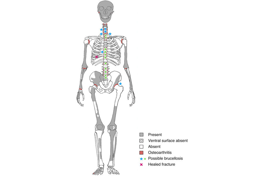 Новая работа специалистов из Цюрихского университета предполагает, что причиной деформаций скелета был бруцеллез.