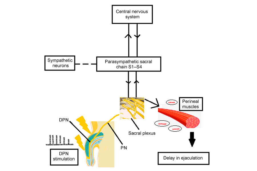 «Точный механизм влияния нового метода на эякуляцию до конца не изучен, — пишут авторы работы. — Мы можем экстраполировать некоторые теории из исследований, оценивающих влияние стимуляции дорсального пенильного нерва на гиперактивный мочевой пузырь... Стимуляция дорсального пенильного нерва может подавлять парасимпатические эякуляторные выходы и влиять на активность ядра Онуфа в крестцовом отделе спинного мозга, которое подавляет двигательный ответ мышц промежности».