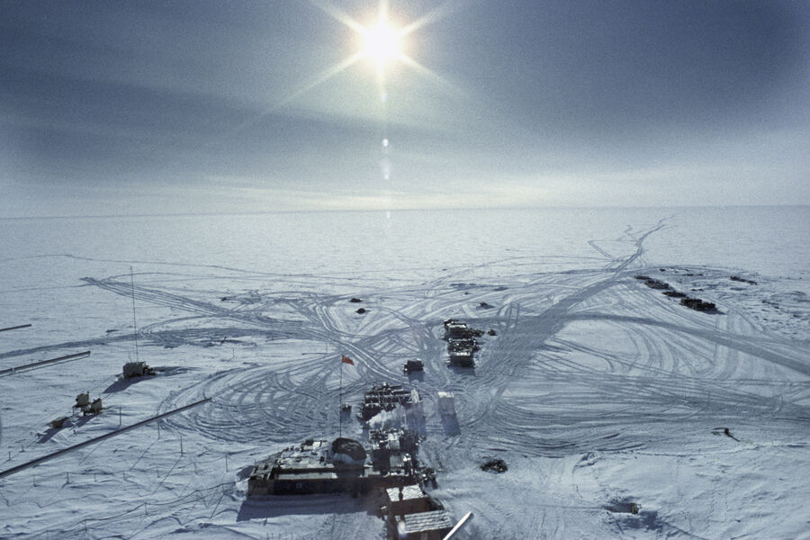 Вид на научно-исследовательскую станцию «Восток» в районе Южного геомагнитного полюса в восточной Антарктиде, 1984 год
