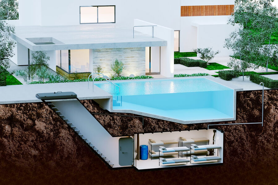 Подземные помещения должны быть окружены прочной защитной оболочкой, например, из железобетона. Его толщина может варьироваться от 30 до 70 сантиметров. По швейцарским стандартам, на каждого человека выделяется не менее одного квадратного метра площади. Жизнь в таких условиях не будет комфортной, но необходимо помнить, что чем больше расстояние между несущими стенами или колоннами, тем менее прочна конструкция. Входы необходимо герметично закрывать толстыми стальными дверьми, открывающимися наружу, чтобы взрывная волна не могла распахнуть их.
