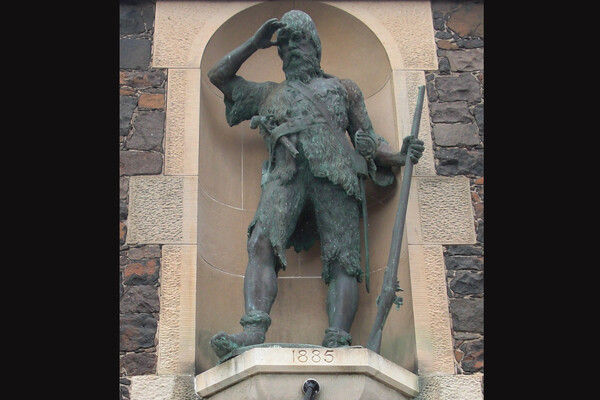 Статуя Александра Селкирка на месте его первоначального дома на Мейн-стрит, Лоуэр-Ларго-Файф, Шотландия