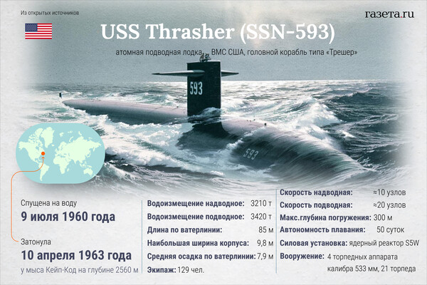 Атомная подводная лодка USS Thresher затонула 61 год назад