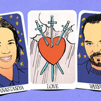 Если предыдущий специалист гадал про отношения, то Виктория сделала два расклада с ответами на каждый из вопросов. По первому, о мотивации Анастасии и ее чувствах, гадалка сказала: «Какие-то чувства она к вам испытывает и надеется, что если уйдет к вам, то ей будет лучше. Но она понимает, что у этого решения много подводных камней, и так просто уйти от мужа у нее не выйдет».