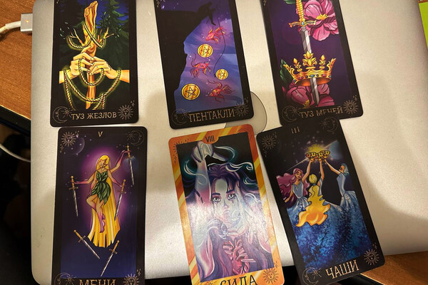 Таролог Виктория была полной противоположностью Наталье и заслужила пять звезд из пяти за качество услуг. Она не считывала биополе и карму, а сразу начала раскладывать (в голосовом сообщении слышались шлепки карт о стол) и вскоре прислала фотографию.