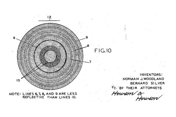 В общем виде она работала так: сбоку от кадров на пленке тянулась тонкая полоса, на которой чередовались щели и закрашенные участки. С одной стороны от пленки была лампа, с другой фотодетектор, и когда пленка двигалась сквозь аппарат, щели вызывали мерцание падающего на детектор света. Эти мерцания преобразовывались в электрический сигнал и направлялись на динамики, благодаря чему зритель слышал речь или музыку. Первые штрихкоды Вудленда, запатентованные в 1949 году, работали по тому же принципу, только линии считывались не как звук, а как закодированные цифры. При этом коды имели круглую форму, чтобы «проигрывать» их можно было в любом направлении. Однако для этого требовалось оборудование размером со стол, — использовать его в супермаркете было невозможно, поэтому об изобретении никто не узнал.