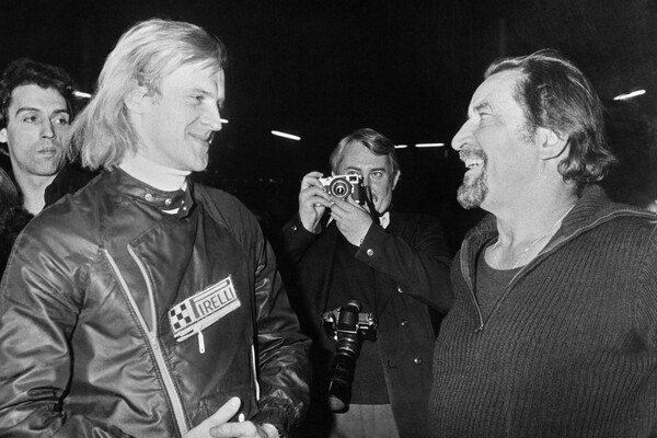 Солист балета Александр Годунов (слева) с бельгийским хореографом Морисом Бежаром (справа) во время гастролей Большого театра во Франции, 1979 год