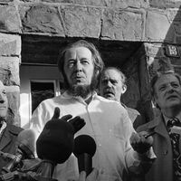 Александр Солженицын покинул Советский Союз в феврале 1974 года — точнее, его выдворили из страны с лишением гражданства в качестве альтернативы тюрьме. Одновременно с этим по всей стране сотрудники библиотек начали аккуратно резать на мелкие кусочки все, что писатель успел издать в СССР. Изначально Солженицын получил известность в начале 1960-х годов в эпоху Хрущева, когда его произведения продвигались ради разоблачения культа личности Сталина и как элемент оттепели.
