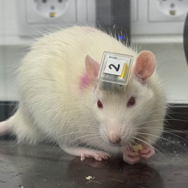 — Белого цвета. Ей имплантировали два электрода в сомато-сенсорную кору. Крысе сомато-сенсорная кора очень нужна, потому что на ней есть представительство усов, а у крыс это важнейший орган. Он практически заменяет крысе зрение, она ощупывает усами разные предметы. Мы стимулируем область усов на ее сомато-сенсорной коре, это «вход» в крысу.
