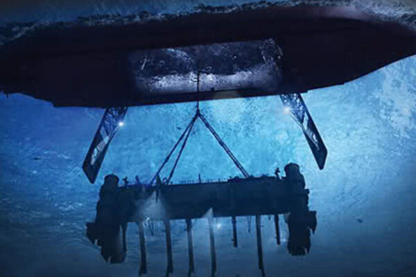 Glomar Explorer опускает устройство захвата, реконструкция