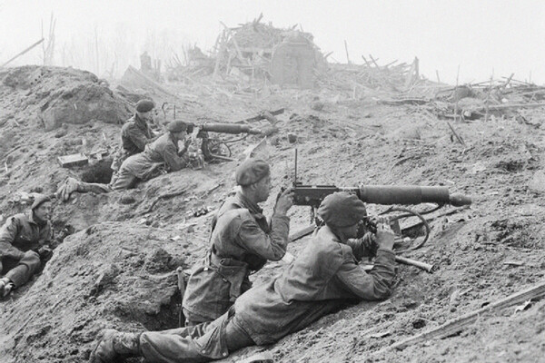Там ситуация для нацистов была не менее отчаянной, а решения немецкого командования диктовались скорее пропагандой, чем логикой. Например, десятки тысяч военнопленных и подневольных рабочих направили на строительство вдоль границы с Нидерландами Вестфальского вала (Westfalenwall). Это была тонкая цепь противотанковых рвов, пулеметных точек и позиций гранатометчиков, несерьезная с военной точки зрения, но крайне духоподъемная для радиопропагандистов.