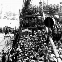 В порту стояла целая толпа людей, жегшая костры и окруженная повозками с пожитками. В ней регулярно раздавались одиночные выстрелы офицеров, не желавших сдаваться в плен. Другие, более предприимчивые, старались добыть хоть катер, хоть лодку, хоть любую лоханку, сидя в которой можно грести руками вместо весел. Самые отчаянные бросались в мартовское море и пытались догнать корабли вплавь. Везучих подбирали эсминцы, менее удачливые, в лучшем случае, добирались до более безопасного места на берегу.