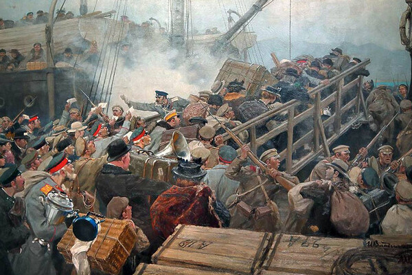 Эвакуация продолжалась до самого утра. В восемь часов от берега отошли основные силы добровольцев. «Какой-то миноносец повернул вдруг обратно и полным ходом полетел к пристаням. Бухнули орудия, затрещали пулеметы: миноносец вступил в бой с передовыми частями большевиков, уже занявшими город. Это был «Пылкий», на котором генерал Кутепов, получив сведение, что не погружен еще 3-й Дроздовский полк, прикрывавший посадку, пошел на выручку», — рассказывал Деникин, сам уходивший на крейсере «Цесаревич Георгий» вместе со штабом. На «Пылком», однако, для дроздовцев не хватило мест, как и для множества других солдат и офицеров.