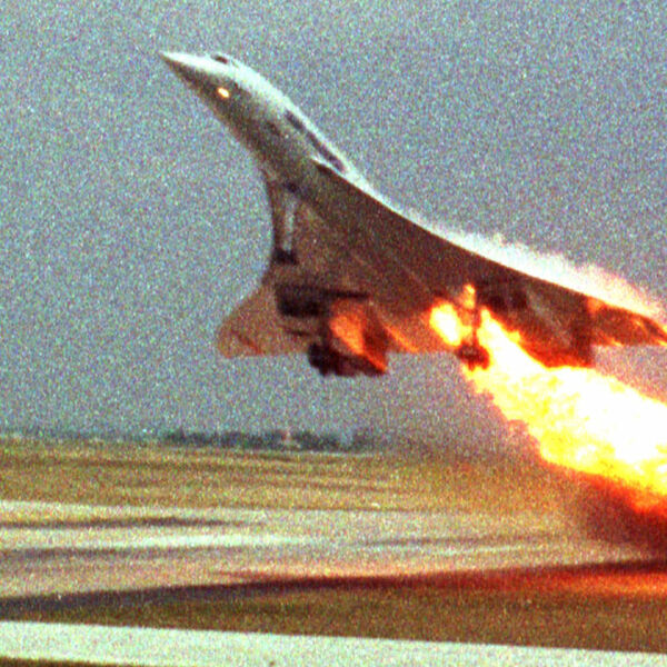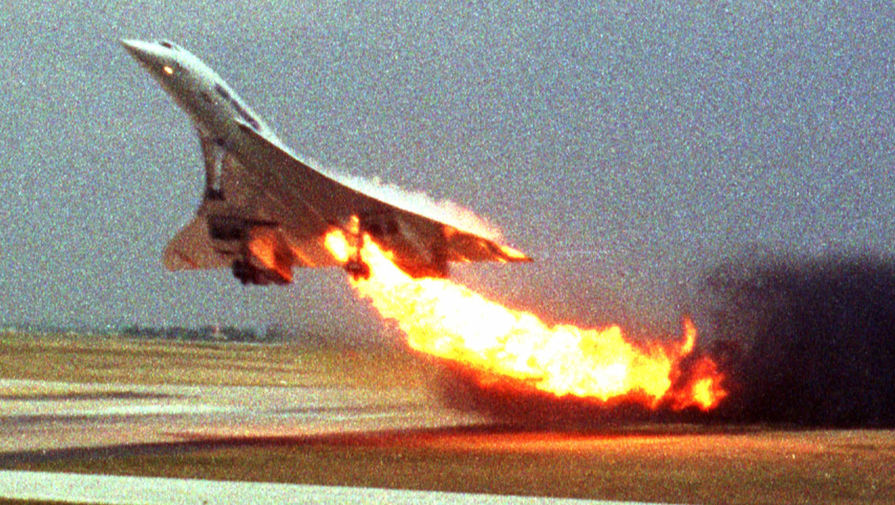 Самолет «Конкорд» Air France рейса 4590 во время взлета из парижского аэропорта Шарль-де-Голль незадолго до крушения, 25 июля 2000 года