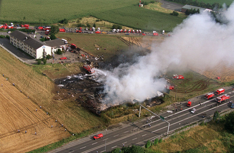 На месте крушения «Конкорд» Air France рейса 4590 под Парижем, 25 июля 2000 года