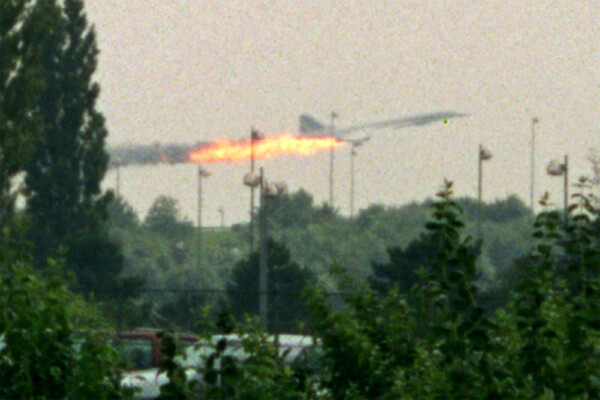 Как это выглядело со стороны затем восстанавливало следствие путем опроса свидетелей. 25-летний Марк Оливье играл в баскетбол, когда заметил идущий со стороны аэропорта самолет на предельно малой высоте. Он шел на город, и пилот резко повернул вправо, чтобы, по мнению свидетеля, увести от него самолет. Однако при попытке выйти из маневра «Конкорд» потерял скорость, начал снижаться и задел левым крылом за верхушки деревьев. Горящий самолет начал сильно раскачиваться по крену влево-вправо, пока в один момент крыло не задело землю и борт не разбился, как раз на полпути к Ле-Бурже.