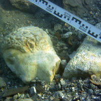 Фрагмент мраморной статуи, переиспользованной при строительстве причала IV в. н.э.