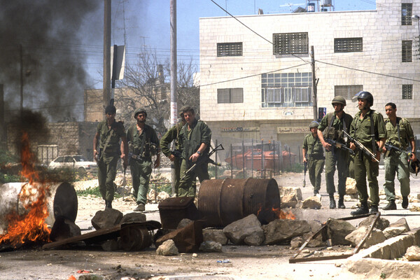 Дебаты шли в основном теоретические, вплоть до момента, когда в 1987 году арабы Западного берега подняли восстание против Израиля — интифаду. Согласно правому взгляду на проблему, ими двигало внутренне стремление уничтожить евреев. Согласно левому взгляду, палестинцы были возмущены своим статусом: жители оккупированной территории, без права голоса, граждане неизвестно чего, подсудные израильским военным судам и подчиненные израильской армии. Вдобавок израильтяне активно возводили на Территориях поселения, надеясь таким образом закрепить землю за собой.