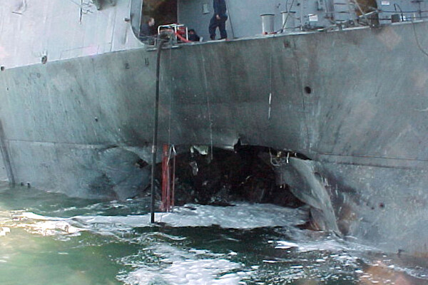 Уже после первых разговоров с экипажем было ясно, что корабль подорвали надувной моторной лодкой типа Zodiac, груженной взрывчаткой. Характер повреждений указывал на то, что взрывчатка массой около 500 кг была сформирована как кумулятивный заряд, направленный внутрь корабля.