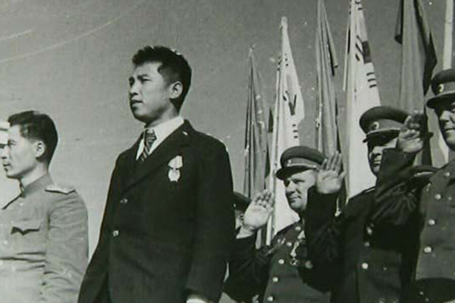 Но северокорейская пропаганда утверждает, что героем того митинга был Ким. И даже с помощью ретуши убрала с его груди на фотографиях орден Красного знамени, как и стоящих сзади советских генералов.