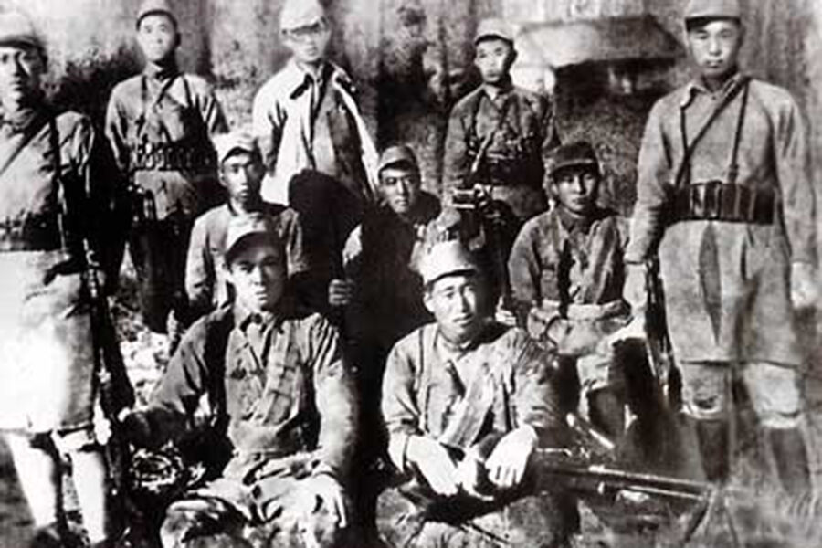 Ким Ир Сен (на заднем плане в центре) с бойцами китайского партизанского отряда