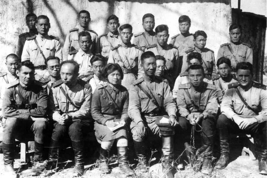 Ким Ир Сен (второй справа снизу) в составе 88-й бригады