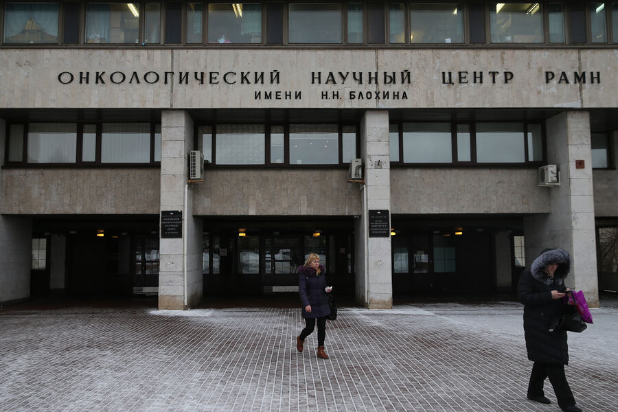 Вход в здание Российского онкологического научного центра им. Н.Н. Блохина на Каширском шоссе