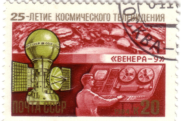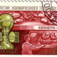 Почтовая марка СССР «25-летие космического телевидения» с изображением КА «Венера-9» (1984)