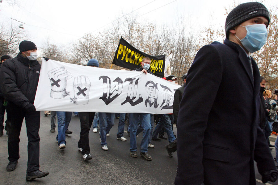 Их лозунги обычно звучали как «Власть белым», «Россия для русских, Москва для москвичей», и «Нелегальный иммигрант – иностранный оккупант».