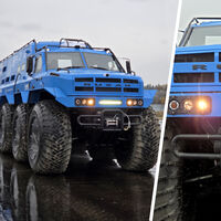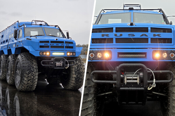 В Подмосковье начались ходовые испытания первого в России вездехода на водородном топливе под названием «Русак». Он выделяется ярким голубым пятном на пустой серой площадке полигона, а при приближении поражают его исполинские размеры: огромные колеса ростом с человека составляют две трети от всего вездехода, остальное – крохотная кабина для экипажа «Русака».