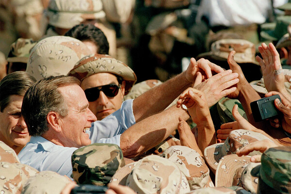 Важно осознавать, что Буш был предельно далеким от пацифизма человеком и гордился своей службой в качестве летчика палубной авиации на Тихом океане в войне против Японии, а так же позиционировал себя как «ковбоя» и был совершенно не склонен к интеллигентским сомнениям. Даже с таким лидером США чуть было не спустили захват Кувейта на тормозах.